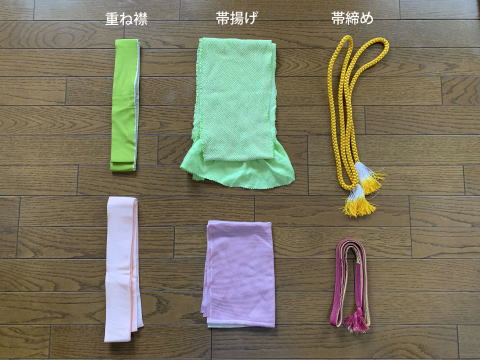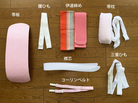 ※腰ひもは3本となっておりますが、着物や長襦袢に紐がついている場合は使用しない場合が